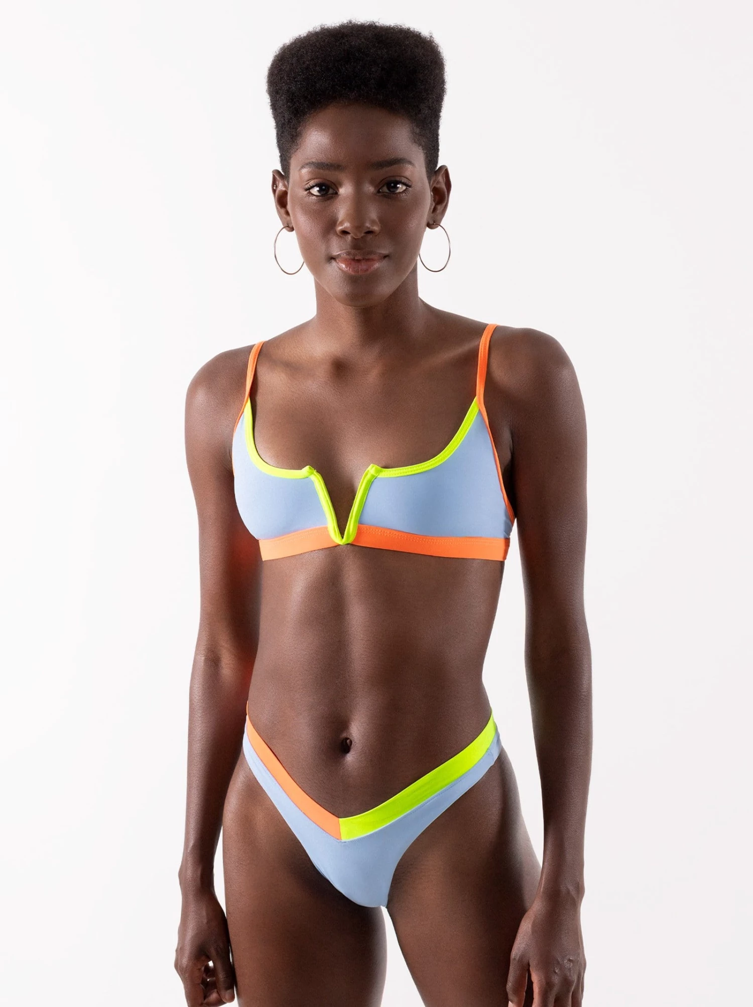 A spicy little centre front v  and adjustable straps for the perfect fit.