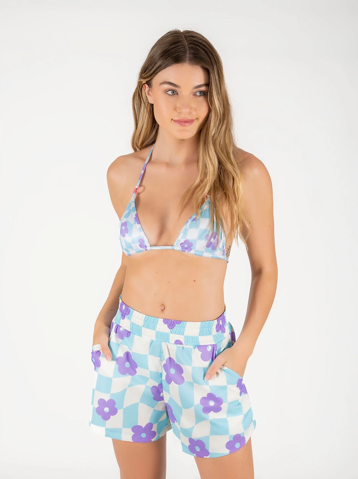 - Short with side pockets and elastic waistband